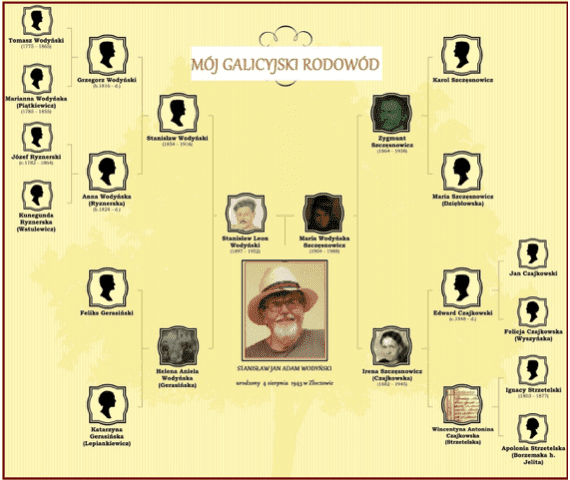 Daty urodzin i śmierci większości przodków podaję za wybitnym, a przy tym bardzo jeszcze młodym genealogiem – Karolem Wodyńskim, który jest wnukiem, wnuka brata, mojego pradziadka. Oprócz mojego dziadka Stanisława pradziadkowie mieli 5 synów: Bolesława, Kajetana, dwóch Janów, oraz Karola i córkę Józefę. Pradziadek Grzegorz miał również liczne rodzeństwo: Jana, Sebastiana, Bartłomieja, Ignacego, Jana, Józefa, Onufrego i jedyną siostrę Kunegundę po mężu – Wojtunik.